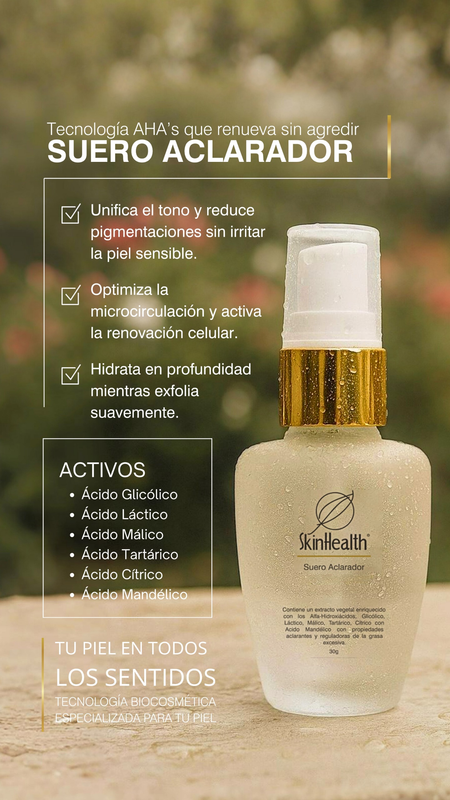 Suero con una mezcla de alfahidroxiácidos (Ácido Mandélico, Glicólico, Láctico, Tartárico, Málico y Cítrico). Recomendado para pieles sensibles.